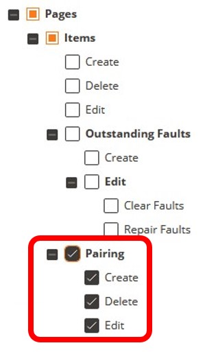 As a TrakaWEB administrator, you may or may not have the necessary permissions to create, edit, or delete Locker Pairing rules. To check if your Software Permissions Group has got appropriate permissions, make sure that the following checkboxes relating to the Locker Pairing are ticked in the Edit options of your Software Permissions Group. The Locker Pairing permissions can be found in the software permissions tree under Web > Pages > Items > Pairing: