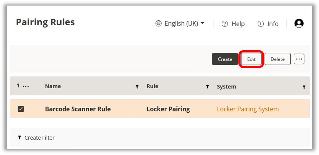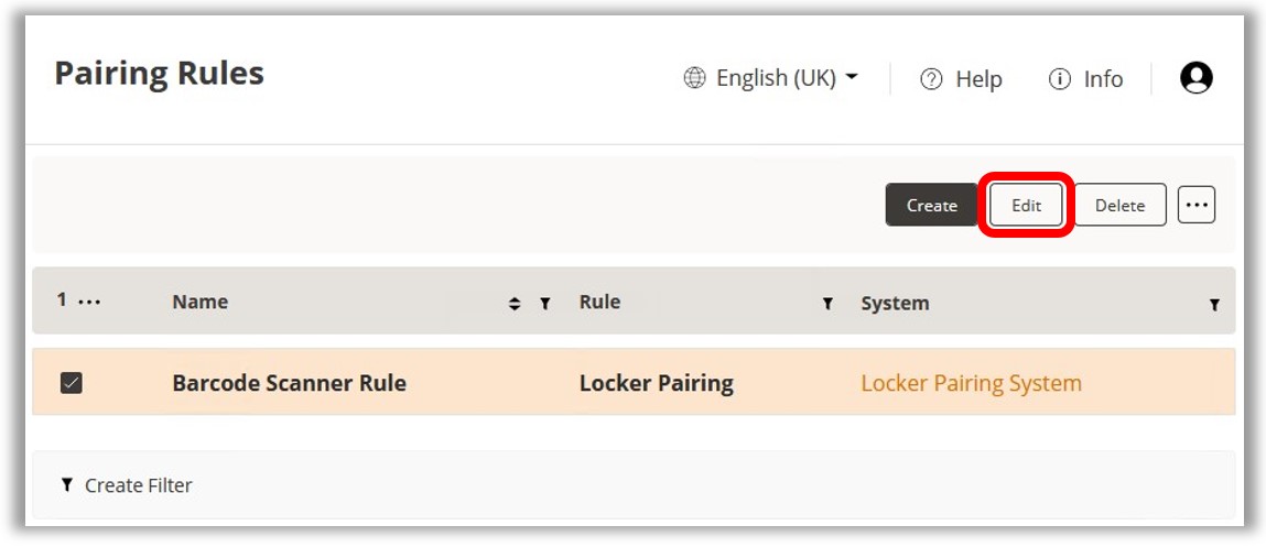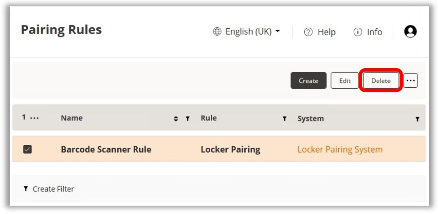 To delete a Locker Pairing rule, navigate to the Pairing Rules page where all the current Locker Pairing rules will be displayed.