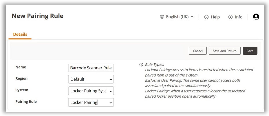 Once a Locker Pairing Rule has been set in place in TrakaWEB, the feature will work on the selected system as soon as the synchronisation completes. In the example below, the following Pairing Rule has been created: